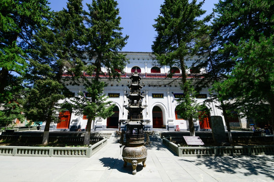 显通寺:最大的一座,供奉五方文殊菩萨,门票十元。