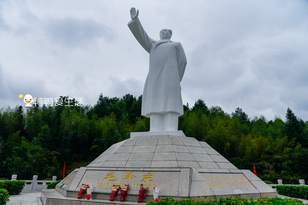 主席纪念园位于古田会议会址后山的右侧,园中矗立一樽巨型主席汉白玉雕像,不少游客前来敬礼献花。