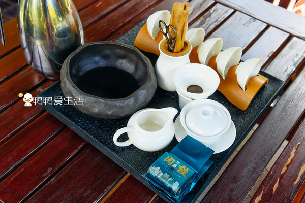 取水点距离酒店大堂就5分钟左右路程,回到酒店后将水烧开,坐在鸣翠湖畔泡茶,真的是极为舒适。