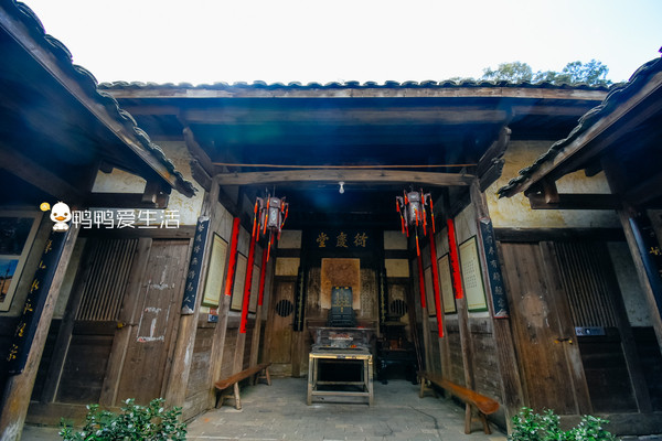 村中最古老的古建筑要数衍庆堂,建于明成化年间,后几经扩建成培田吴氏总祠,堂号“衍庆”,寓意“积善之家,必有余庆”。内设古戏台、妇女儿童看戏间,中厅粉壁拓朱熹所书“忠孝廉节”四字,天子壁悬挂家训、家法、族规,中堂悬挂六至十世祖画像,彰显培田人敬祖尊贤的优良家风。
