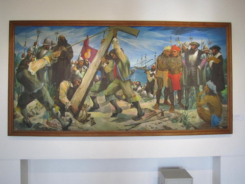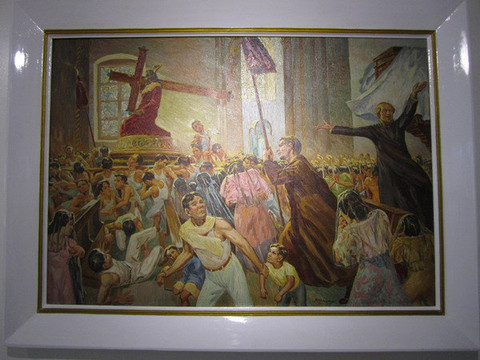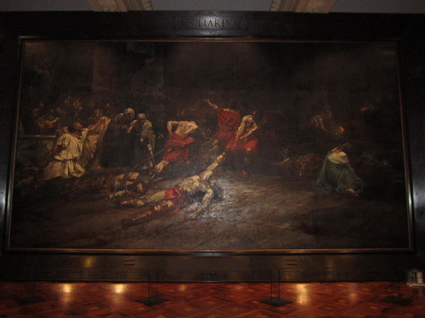 在这里,一进大堂,一座女性带翅的白色雕像和背后一幅整个墙壁大的名画非常让人震撼(国宝级了吧?),画面画的是屠杀场面,反映了一次菲律宾革命的情景,它还有一室专门纪念菲律宾国父黎刹的画像和雕像室,我回国后阅读了一回黎刹的事迹,原来他祖籍是福建的,他应属于受过西方教育的本土菲律宾人,很年青就被杀害了,所以西班牙殖民当局成就了一位英雄,而且他还有和一位爱尔兰小姐刑场婚礼的感人故事,早在我们陈铁军之前。也许陈二烈士听说过他们的事迹,就此效仿一回他们?反正历史上说,当初咱郑(成功)爷爷听说黎刹被西班牙所杀,愤起要起兵征服那里,后来死的早,没有来得及实行了。
