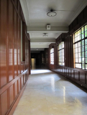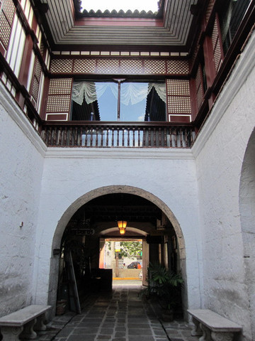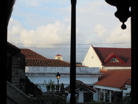 出到街上,我找了一个人力三轮车,这马尼拉反而不像宿雾,看不到机动三轮,全是人力的,说100比索给我拉到圣奥古斯丁教堂去,我知道其实教堂离这里不远,走也不过十几分钟左右,找车主要就是为了抓紧时间给我带路,坐了一会儿车,经过了一个小广场,对面是一排铸铁铸就的菲国名人像,然后再经过一堵古堡式的城墙,教堂就展现在眼前,司机还告诉我说,你看,卡撒马尼拉豪宅就在教堂旁边,我在欧洲看教堂看得太多,这马尼拉的老教堂就是那么一看,进去一分钟我就出来了,走到旁边的卡撒马尼拉,它座老建筑原来是西班牙统治时期的富人豪宅,门票几十比索,我去的晚,但它离关门还有几分钟(打时间差,博物馆是五点关门,这里是六点),一位男青年上前为我一个人用英语导游兼带路上二层各房间,他并不因要关门而急躁,而是很耐心地的向我诉说着这座老宅的历史和由来,但不允许拍照。这里面的木雕非常精美,本人英语太马虎,只听得他不停地说这件家具是由什么什么树木雕刻而成的意思,我最喜欢它大片的外窗,那不是用玻璃制的,而是用当地极薄的贝壳一叶一叶地接拼到小木框上去的,结果比玻璃不仅透光还有遮蔽隐私的作用,而且现在就变成一绝了。