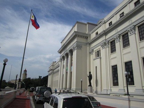出了马尼拉机场,日光十分强烈,先找的士,这机场的的士吓了我一跳,去市中心居然要价1500比索,(所以由机场到市中心搭计程车是较省力和省心的办法,一般约需P150-300。这是我回来在百度上查到的信息,可见驴友们一定要警惕)之前我们在宿雾机场坐车都是一百多二百比索,这马尼拉好像是被黑社会垄断了似的,这么贵呀,我摸摸口袋,这么打的钱可不够花了,赶紧问女儿又拿了几百,那小蒋倒是不在乎,毕竟生意人嘛,我犹豫了一下心想如果这次不被宰看来马尼拉的计划就全泡汤了,外面即晒且不了解情况,关键是时间,狠下心坐上车我让司机直奔国家美术馆,他们二人要看教堂和逛街,就随便他们了。