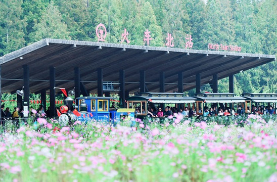 在万亩水上森林天然氧吧舟游骑行深呼吸,感受夏天格桑花的粉与森林的绿相映成趣的无穷乐趣。