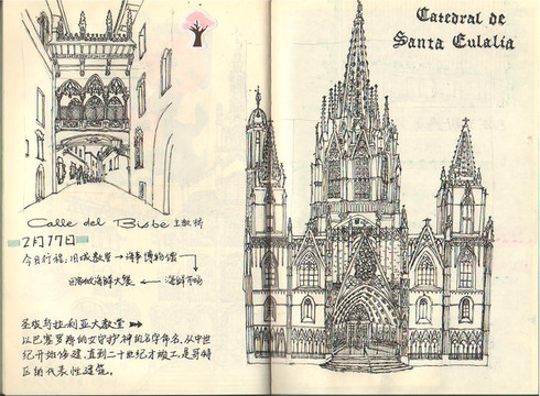 西班牙旅游手账105页文字加手绘(巴塞罗那-格拉纳达-马德里)