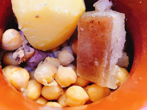 鹰嘴豆、蔬菜、半肥半瘦的红烧肉……把它们都煮到一起,这就是“马德里煮”。