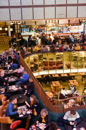这座建筑看起来就像一个70年代的公寓楼,很容易错过,但却值得来一趟——由大剧院改造的米其林美食餐饮集聚地,整个建筑的设计很酷,三层楼的餐厅完全是美食广场,一楼供应地中海和来自世界各地各种风味食物,二楼有tapas及西班牙风味,三楼是点菜的高级餐厅,前院有地方供专门的乐队演奏和表演Live Show。