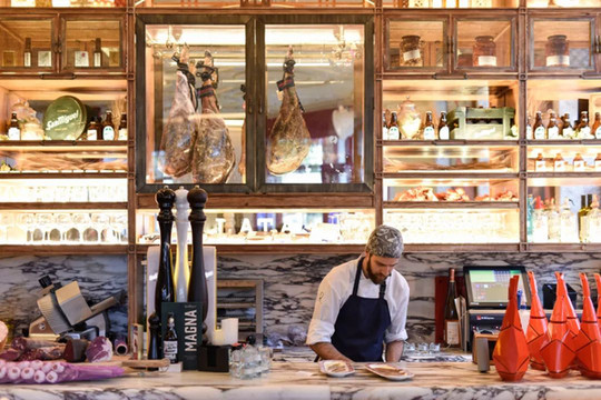 餐厅搭配西班牙的尖端食物,除了传统的西班牙美食外,亮点包括火腿、印度风味沙拉、迷迭香牛尾和上釉菊苣,以及西番莲果水烤鸽子。