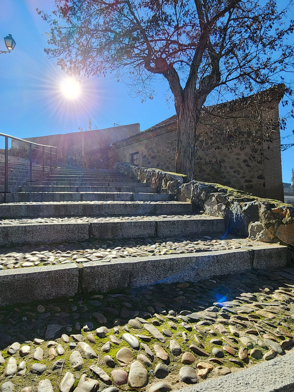 Coach 车站出来就看到前方几百米高处的托莱多老城。我们上山的时候,通过建于16世纪中叶的正门比萨戈拉门步行登顶,从这里可以远离游客感受这座至今仍保留着中世纪风貌的古城。斜坡很大,气温很低但是内衣还是有点出汗后的潮气。我们就当早锻炼了。另一种方式更轻便,就是通过游客中心长达千米的自动扶梯直达。回程的时候我们就是从自动扶梯下来的,方便很多。
