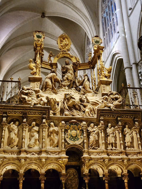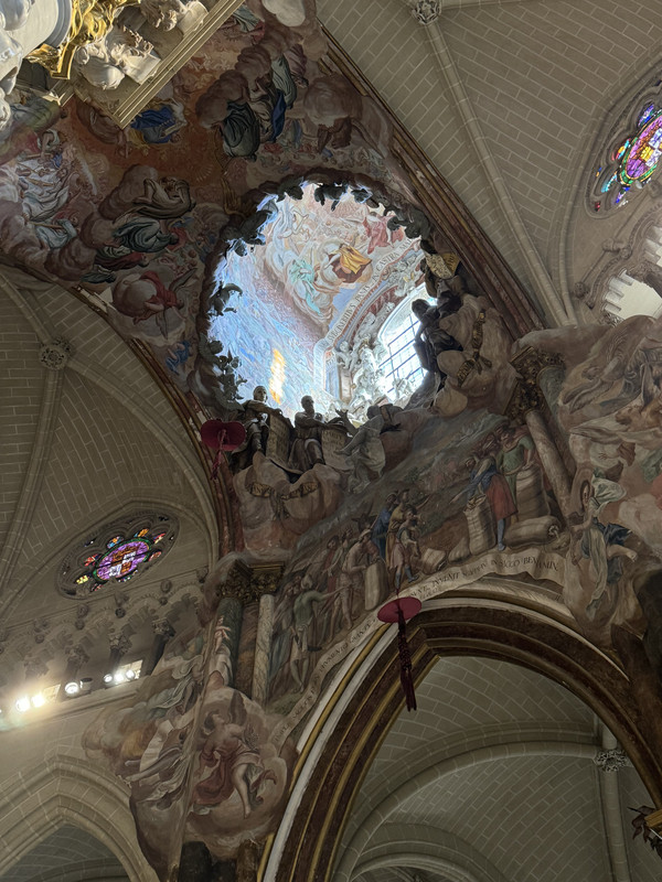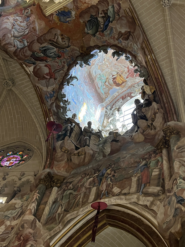 世界最大天主教堂之一的托莱多主教座堂(Cathedral of Tolendo),是哥德艺术的顶峰之作,也是最佳的历史见证。托莱多大教堂是当时西班牙基督教教会总教区的第一大教堂,是西班牙排名第二的大教堂。屋顶天井是整座教堂最吸睛的地方,无法用语言来形容它给我们带来的震撼感!顺着天神和天使们的指引,沿着光线望向那美轮美奂的穹顶,仿佛那就是升往天堂的阶梯。