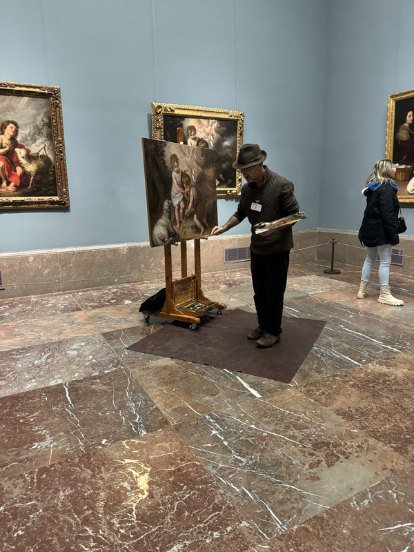 从托莱多回到马德里后我们直奔普拉多博物馆。博物馆周一到周六都是晚上8点闭馆,周日是晚上7点结束。普拉多博物馆是世界十大美术馆之一,收藏了委拉斯盖兹、戈雅、提香、鲁本斯、拉斐尔等绘画大师名作,是收藏西班牙绘画作品最权威、最全面的美术馆。对艺术珍品感兴趣的朋友,在普拉多起码要预留一天以上的时间才行。不管是哪个分馆,都让人舍不得离开:如此多的艺术珍品环绕身边,是莫大的视觉享受和心灵震撼!我们大概花了3个半小时在里面,老公因为白天在托莱多的暴走,导致最后直接在博物馆瘫了很久。门票15欧一人,女儿用英国的学生证免票。