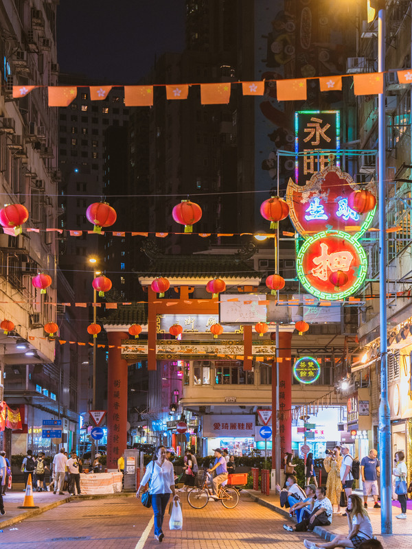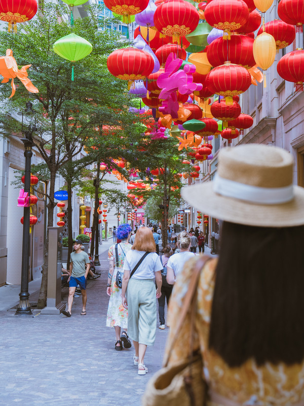 寸土寸金的快节奏香港一起向上看,这条彩色灯笼挂满天的就是利东街啦。地上地下都有商场可以逛吃逛吃的同时,还可以在路边的长椅上享受当下的慢时光。每年不同节日头顶上这片天都会应景儿的变个样子,9月当然要灯笼满天庆中秋啦,晚上来这氛围感更强。
