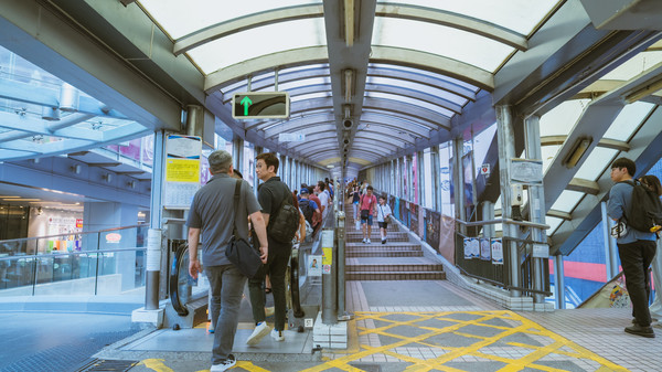 香港中环的半山自动扶梯因为重庆森林而爆火,如果现场搭乘一定会为你打开新世界的大门,让你对人力运输有了不一样的认知。这里有着世界上最长的自动扶梯系统,总长度约800米,垂直落差约135米,不同时段调整正反方向运行,周一至周六上午6点到10点为下行,其余时间为上行。自1993年建成并投用使用,每天承运送约8万人次,是中环商务区与半山居民区不可缺少的交通工具之一。