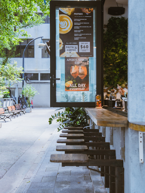逛累了就来这坐下吧,落地大窗可以看到维多利亚港,阳光透进来明亮又舒服,很多人都会坐在这里静静的看向窗外。