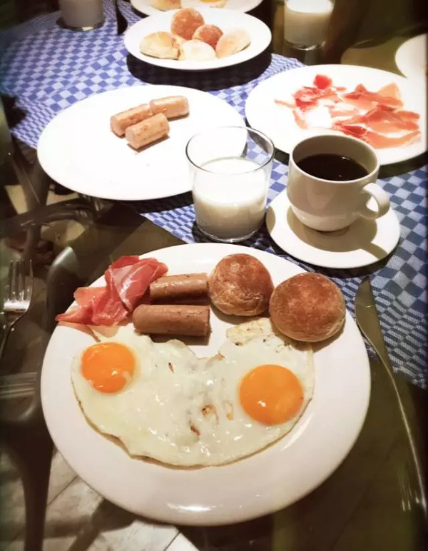 时差还没倒过来,一大早醒来贤惠地做早餐,昨天在酒店隔壁找到很大一个超市,备足了材料。牛奶终于有牛奶味(0.85欧/1升/半脱脂),腌火腿肉和昨晚吃的区别不大(2欧),正担心没有油不知道怎么煎鸡蛋的时候发现人家用的是真的不粘锅,不用油鸡蛋一样煎得棒棒的。
