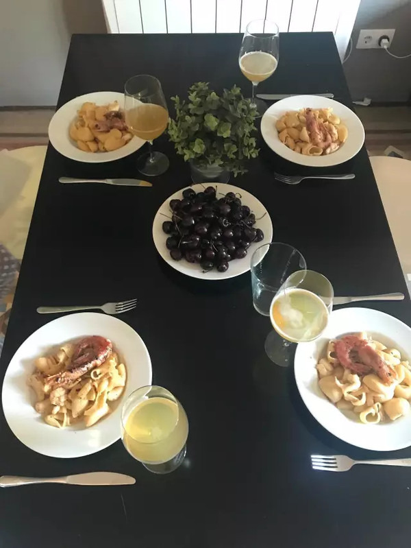下午去了La Boqueria市场,买了海鲜回家做墨鱼大虾意面,市场什么都有卖,价格都很好。需要注意的是门口摊位的鲜榨果汁2.5欧,往里面一点1.5欧,再往里面一点1欧。😁
