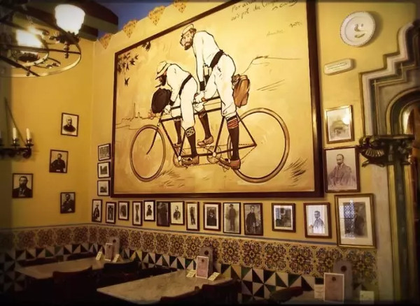 Els 4 Gats 四只猫餐厅,开在Gracià大街皇后宫商场后面的巷子深处,提前预定了8点半的位子,慕名而去。餐厅1897年开张,复古优雅,是年轻毕加索出名前常去的餐厅。Google推荐的蘑菇虾面说是季节性菜品,目前不提供。不过意外的点了墨鱼饭,墨墨黑,饭里面全部都是黑色的墨鱼肉,白色的墨鱼只是为了装饰,比起Majò的海鲜饭有过之而不及。天天都有饭吃真是无比开心。