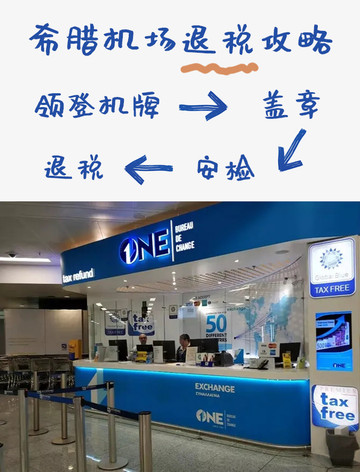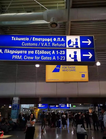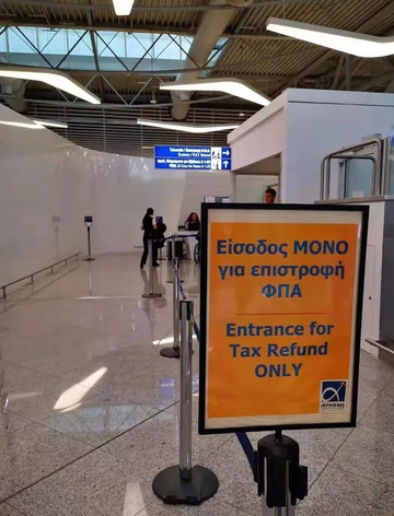 2.退税盖章,进入雅典机场,根据指示牌,按照V.A.T. Refund 箭头指示的方向走,在退税点需要出示退税单、护照、登机牌申请退税盖章。有时候退税点工作人员会要求出示所购买的物品。