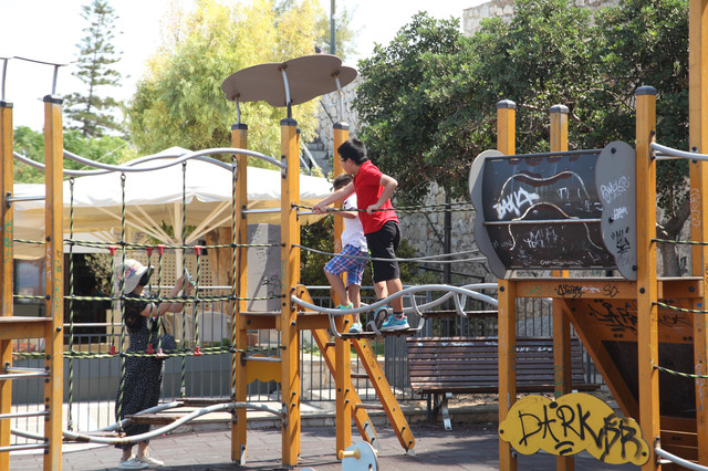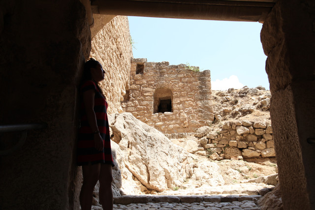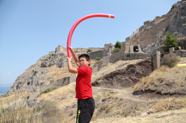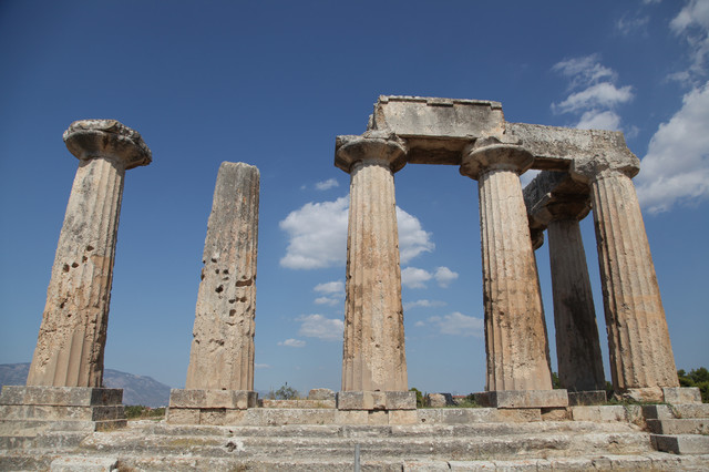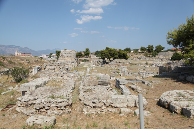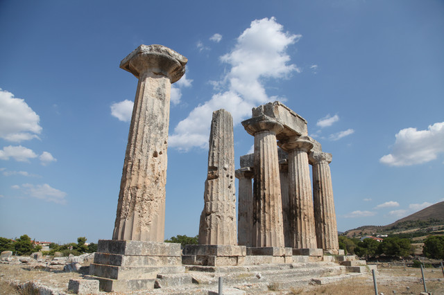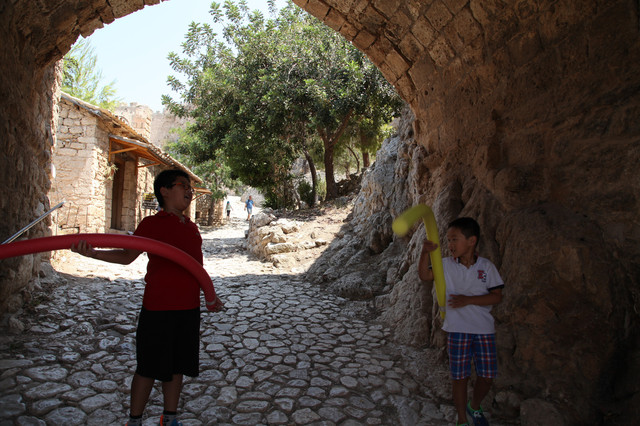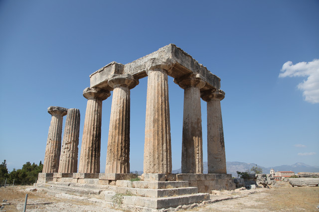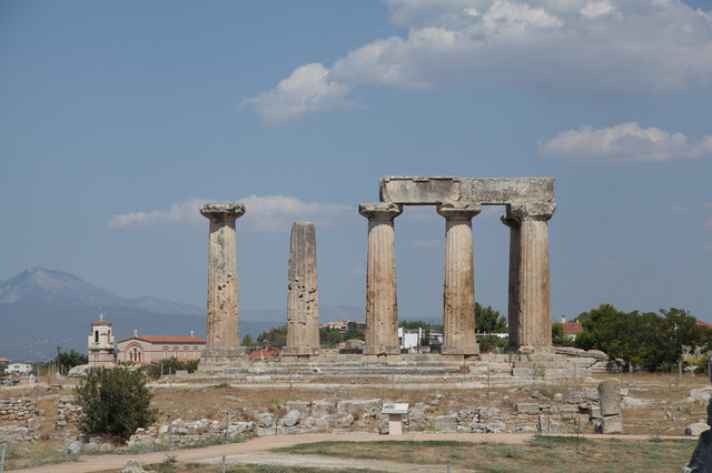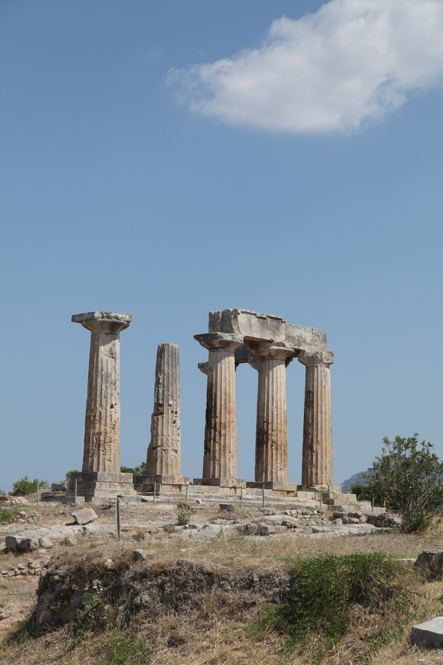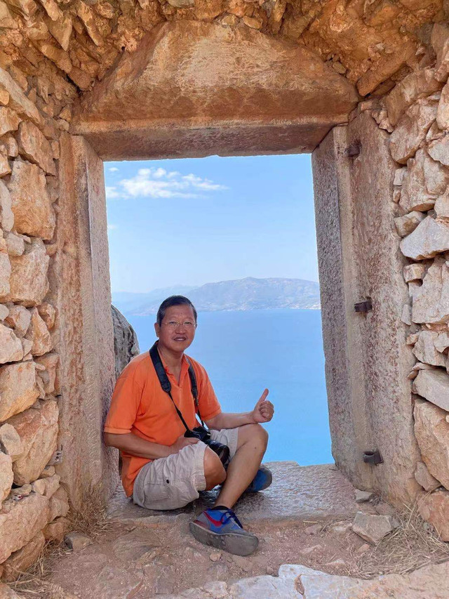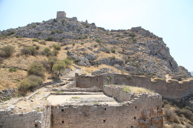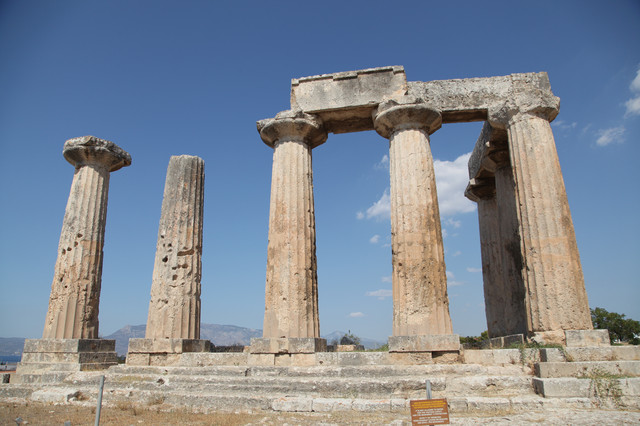 随后,我们马不停蹄地驱车直奔科林斯卫城。它位于古科林斯南面的一座山巅上,是古希腊的天然关隘屏障之一,站在这里可以俯瞰周边开阔的城镇景色,一览风光无限的海上美景,科林斯卫城有许多经典古建筑,其中最负盛名的当属圣保罗教堂、科林斯考古博物馆等。Keith对这种枯燥单一的石头城古迹兴趣不大,加上当日气温接近40度,孩子们都不肯爬山去看古堡,只剩下大人们还在坚持。