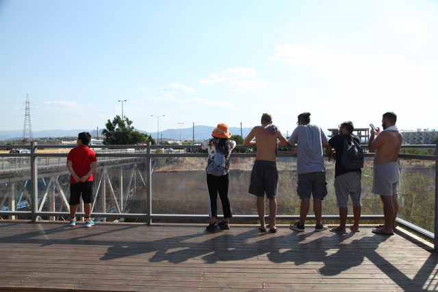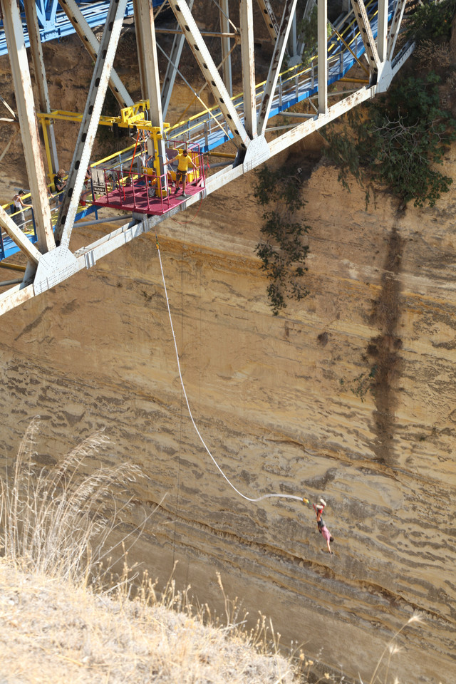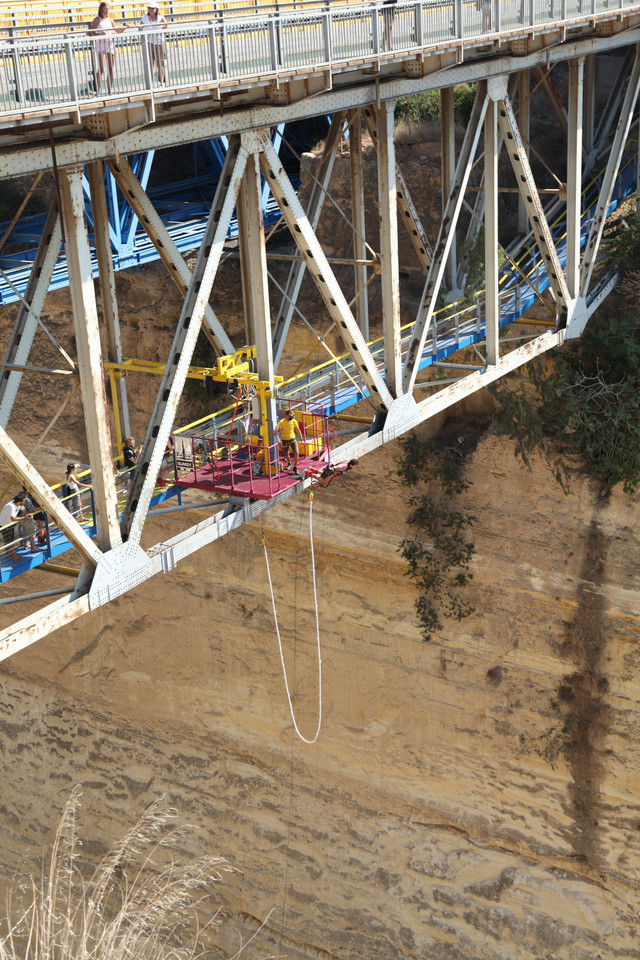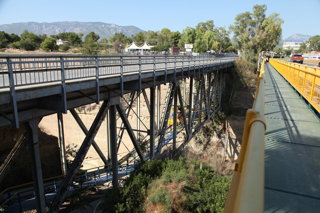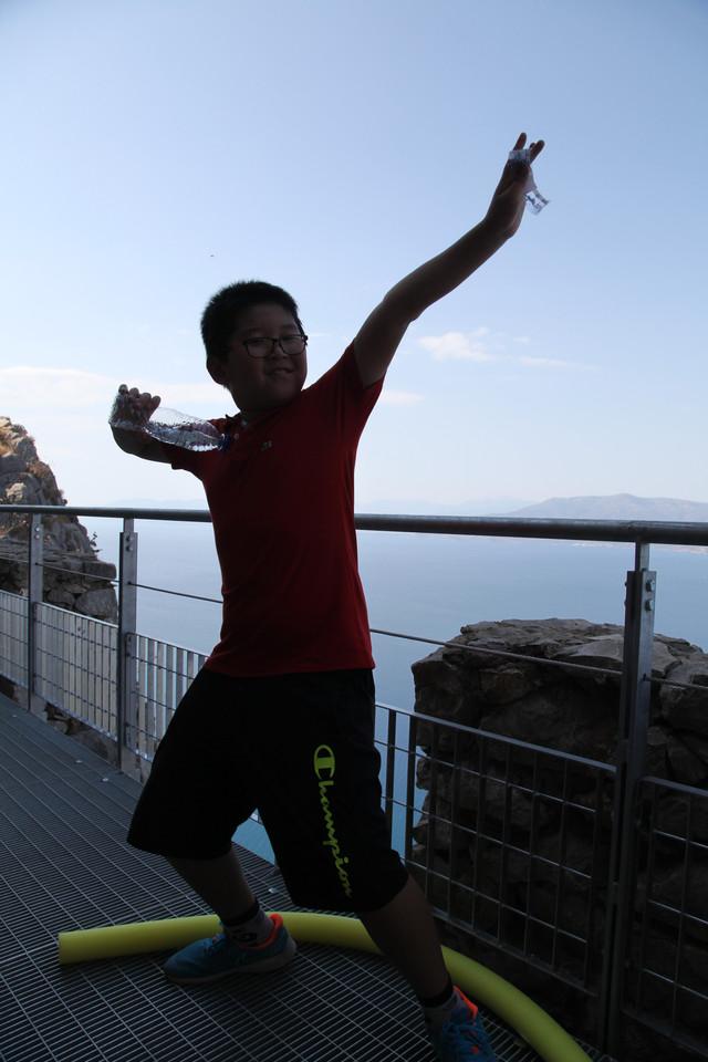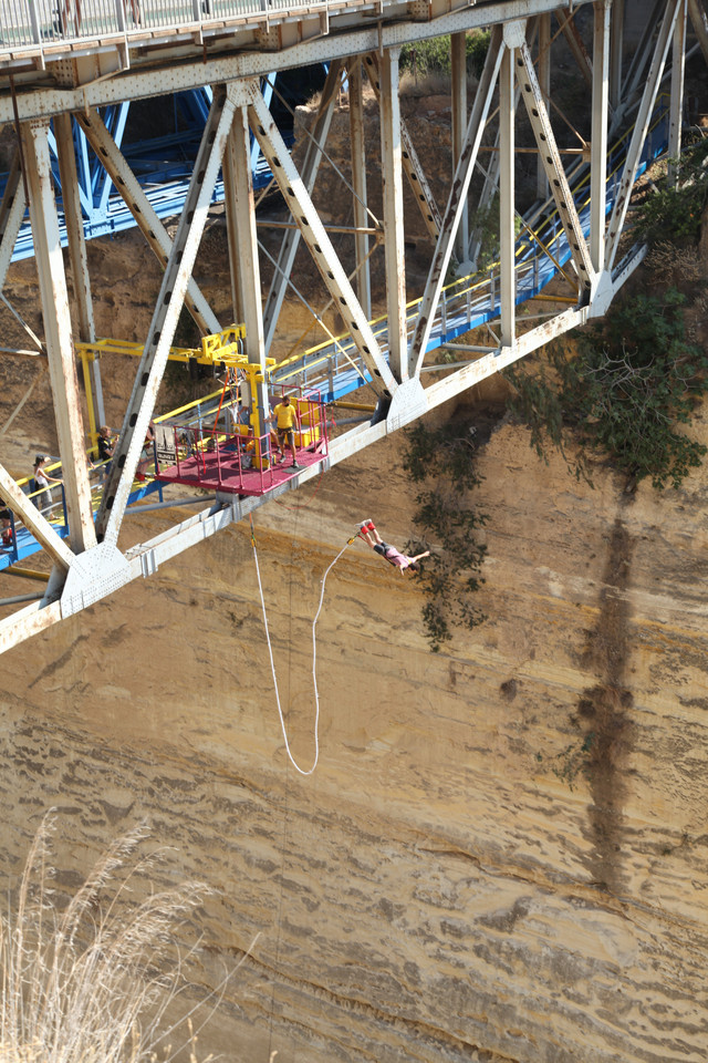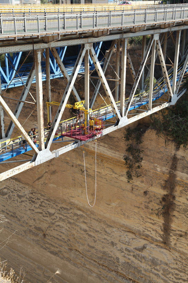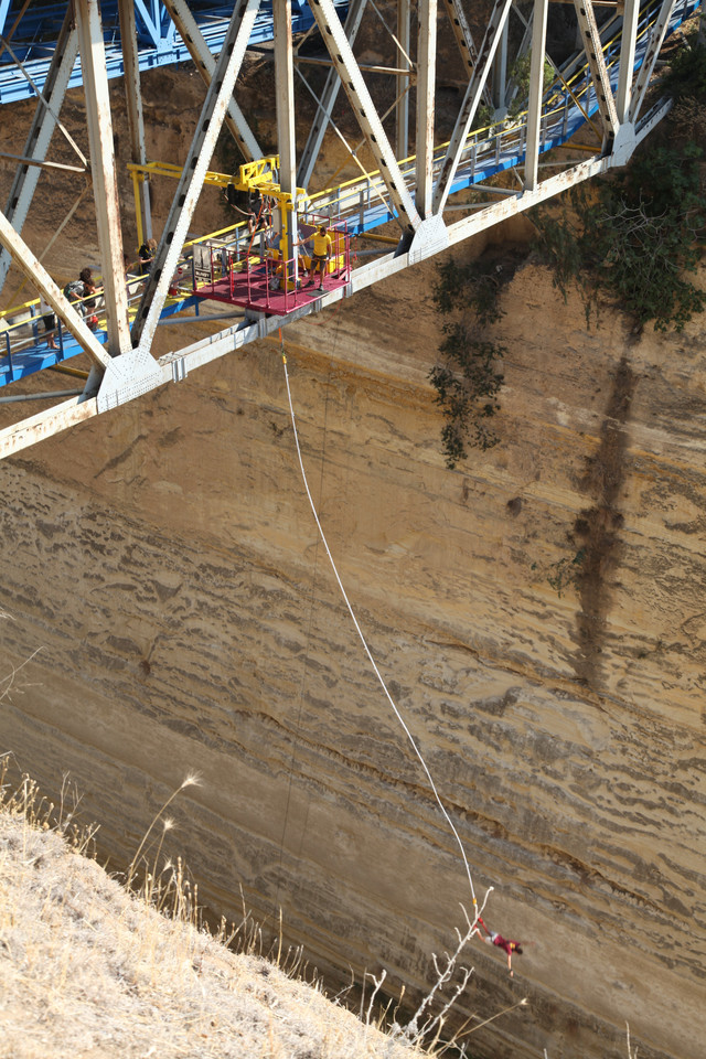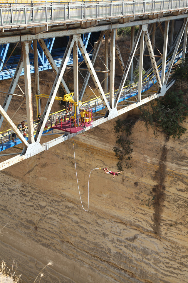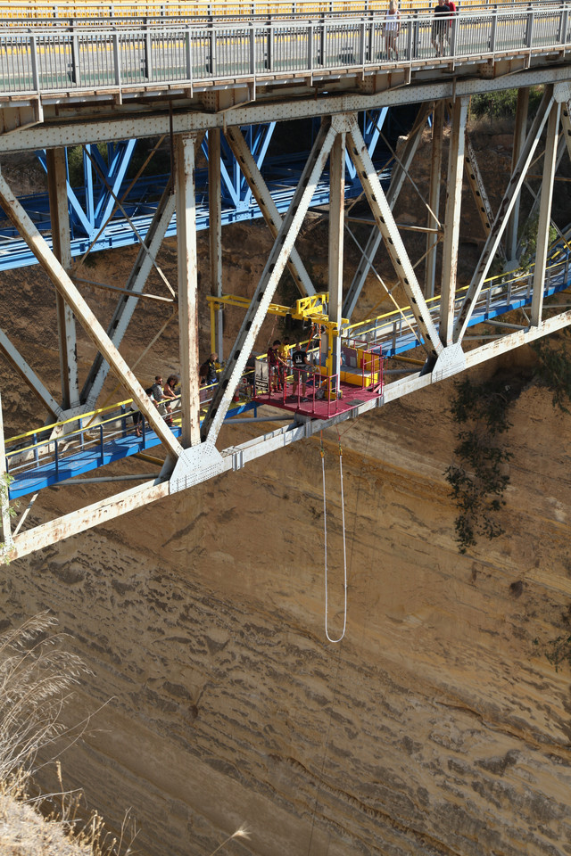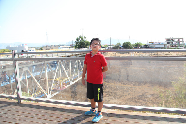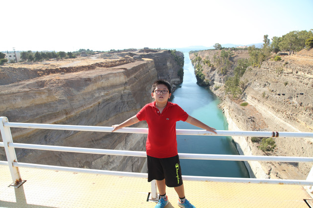 科林斯运河,是冒险家的天堂。因为科林斯运河风景秀美,又因为连接半岛和大陆的桥梁,这里是蹦极的理想选择地。Keith对那些勇敢者的游戏,十分羡慕,不停追问我们如何玩蹦极。我和他妈妈直言我们不敢参与,觉得很危险。
