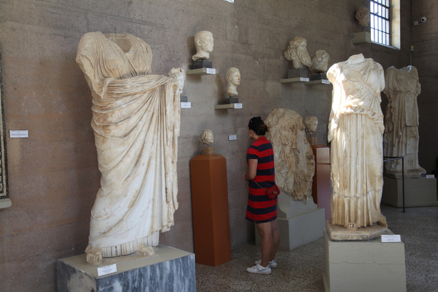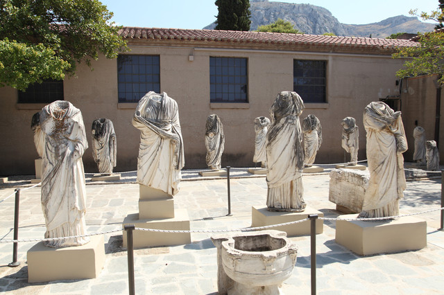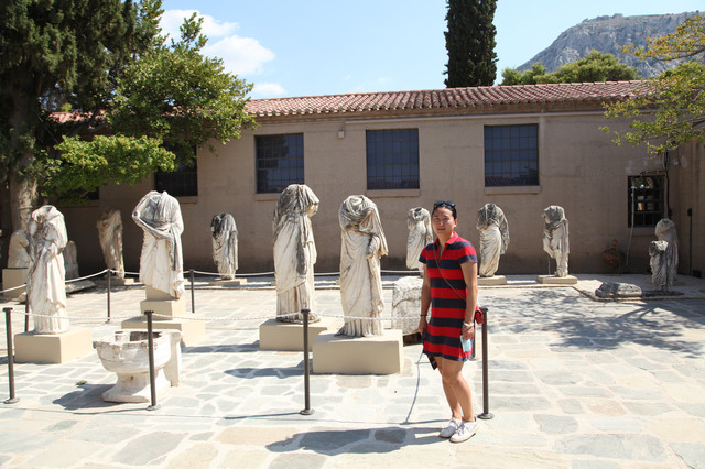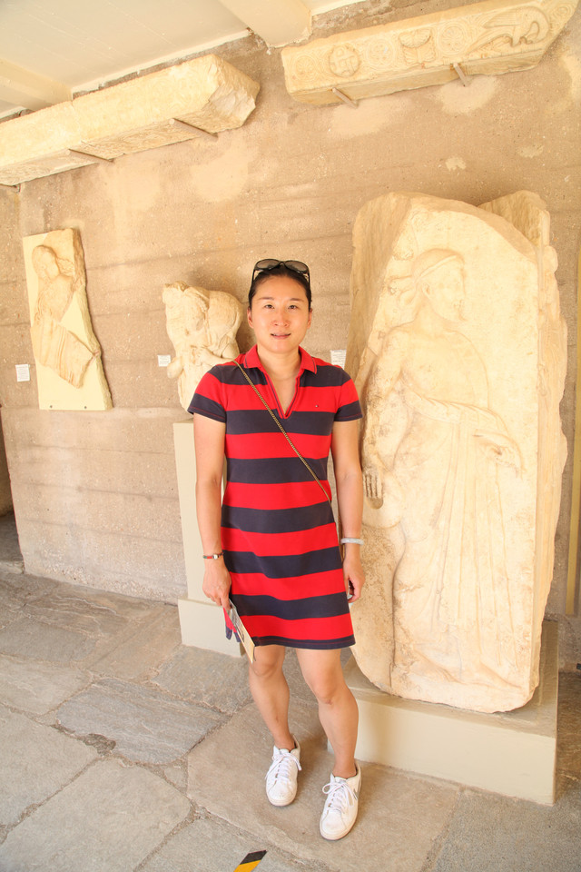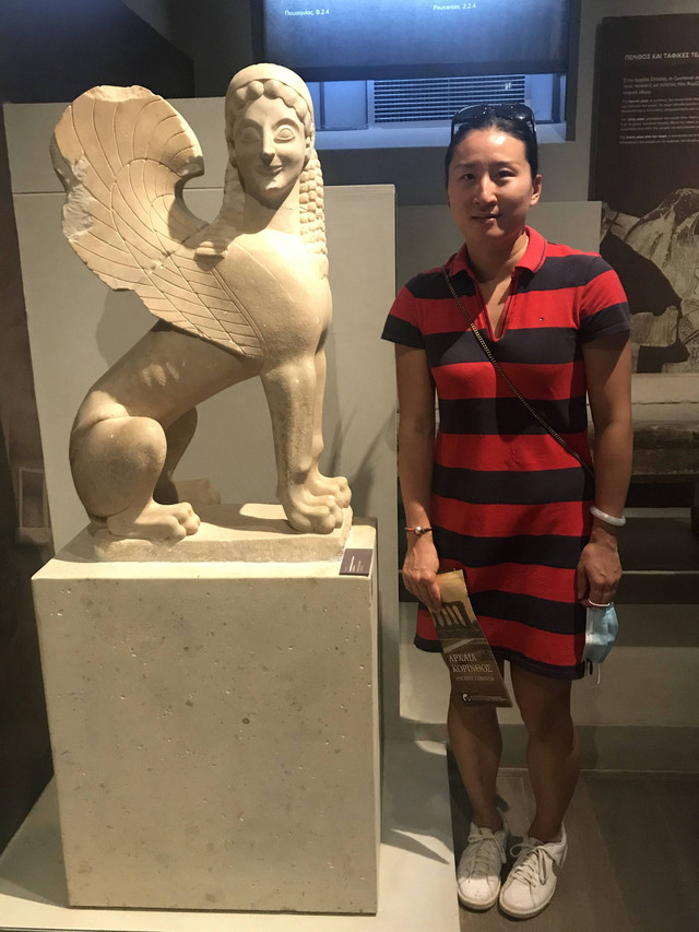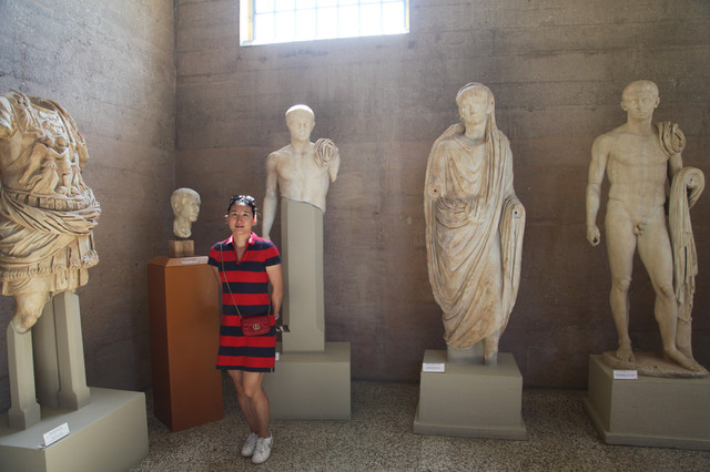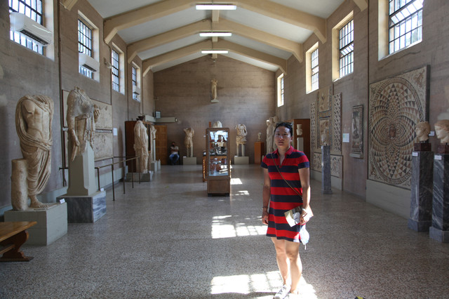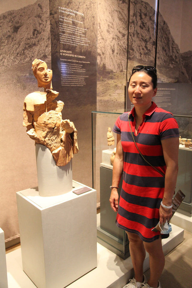 从卫城下山,我们开车去吃午餐,来到考古博物馆附近的一家当地希腊人开的餐馆就餐,这是一家地道的希腊风味餐厅,食物很美味。随后,我们进入科林斯考古博物馆游玩参观。