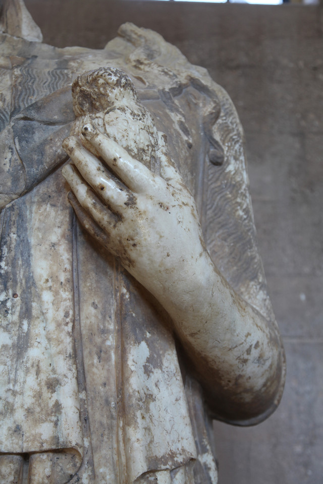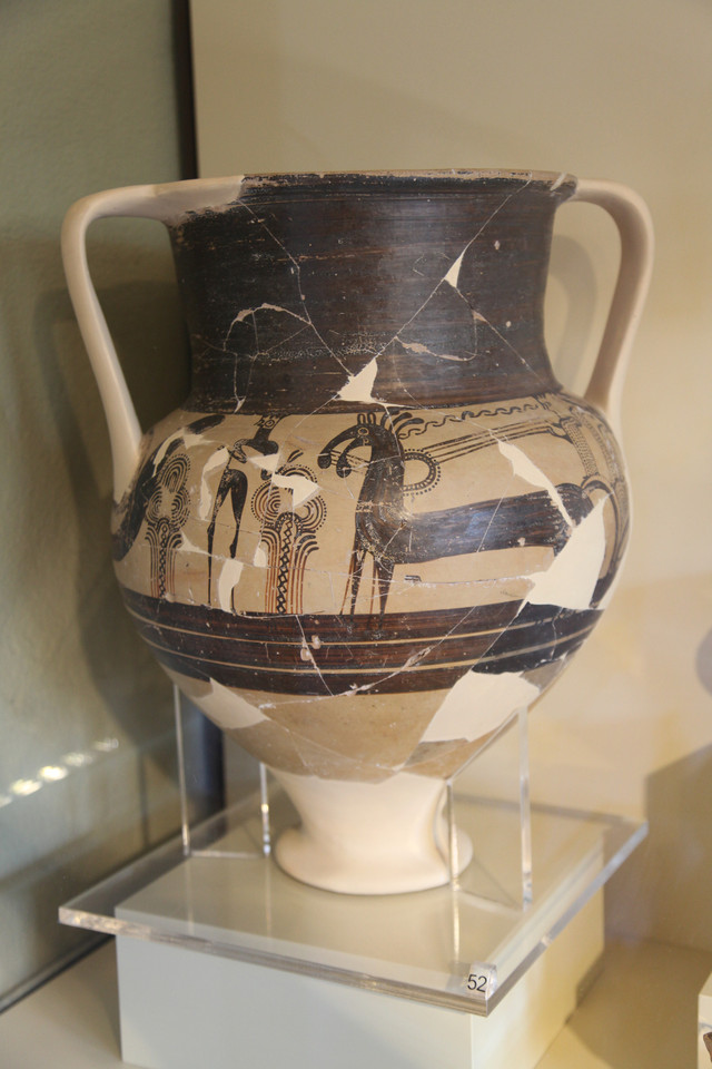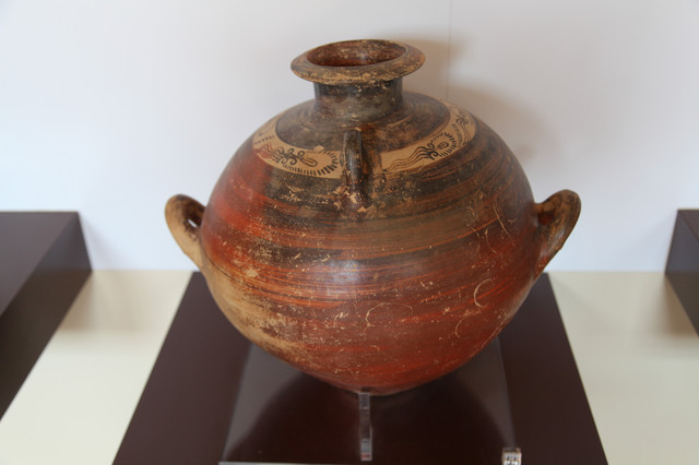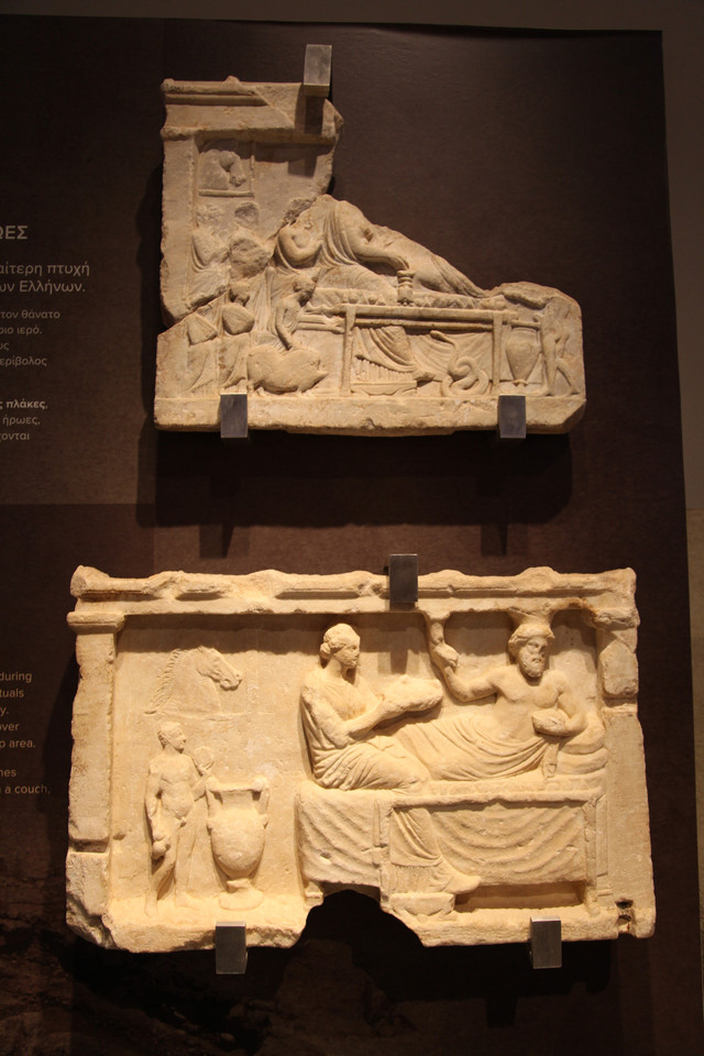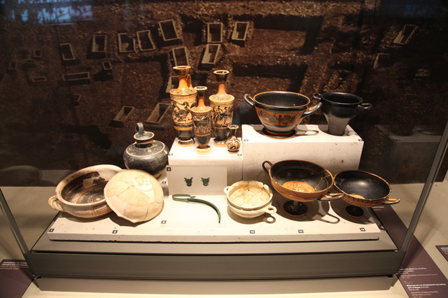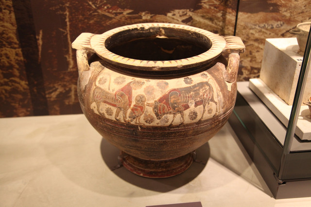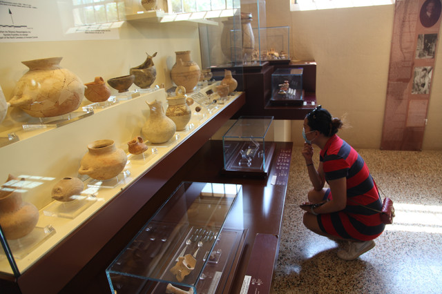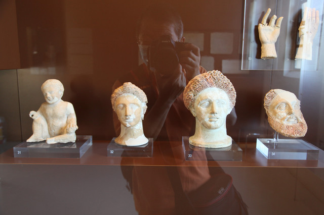 从卫城下山,我们开车去吃午餐,来到考古博物馆附近的一家当地希腊人开的餐馆就餐,这是一家地道的希腊风味餐厅,食物很美味。随后,我们进入科林斯考古博物馆游玩参观。