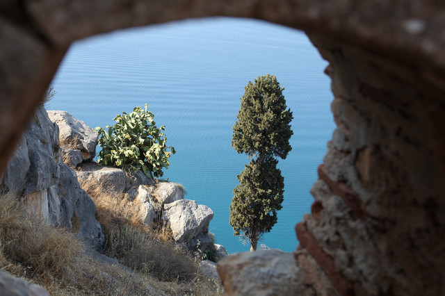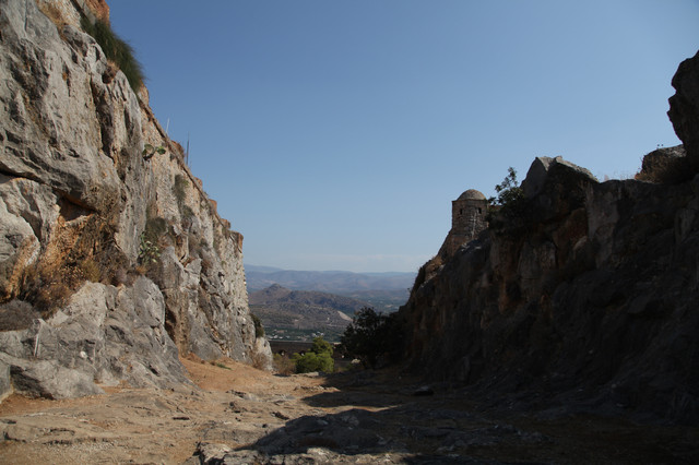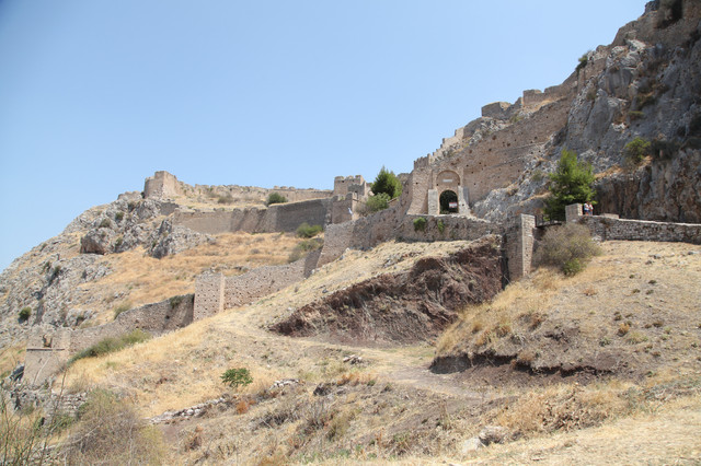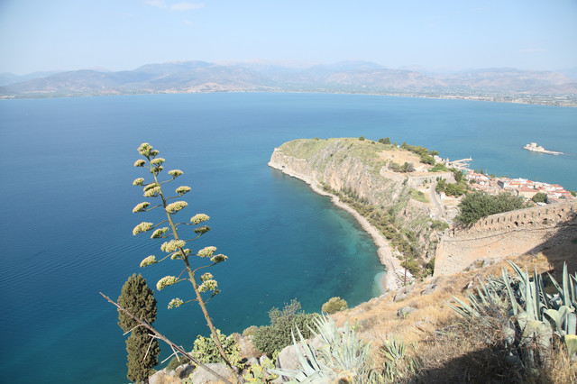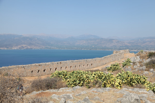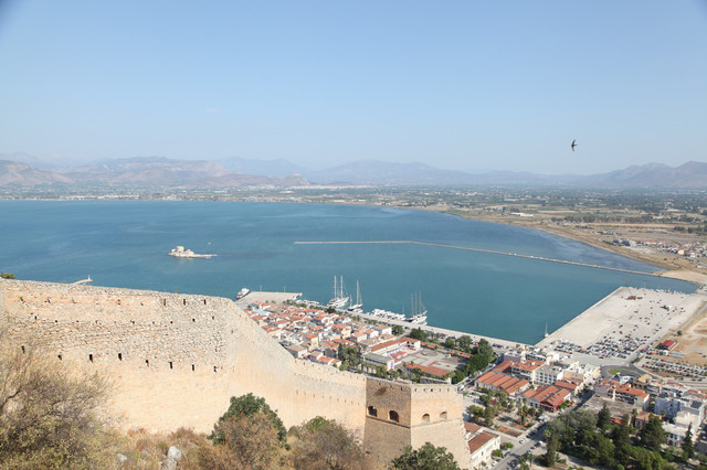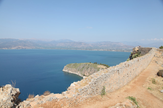 出了雅典,一路向西南方向行驶,沿着萨龙湾绵长的海岸线,途经迈加拉、科林斯,耗时3个小时,行驶165公里,我们来到纳夫普利翁镇南面的帕拉米蒂城堡。