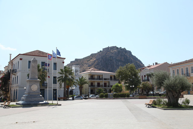 纳夫普利翁镇(Nafplio),位于希腊阿尔戈利斯州南部的港市,地处伯罗奔尼撒半岛东部顶端,阿哥里斯湾北岸,有人口1.1万。港口西部峻崖峭立,海拔约85米。东边有一座低矮的小山,也是帕拉米特翁城堡所在地,海拔216米,外有小岛屏障,形势险要,风景壮丽。