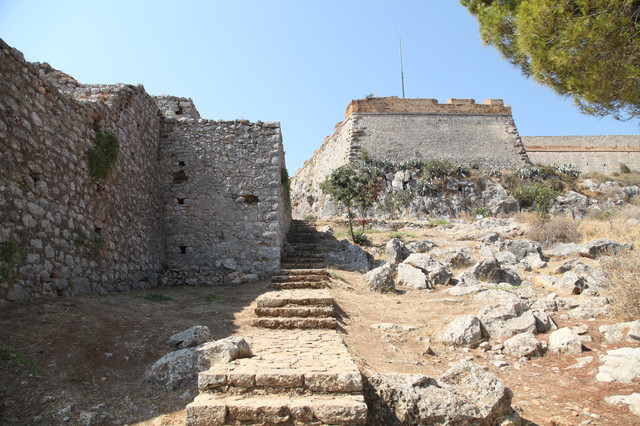 帕拉米蒂城堡是希腊南部的一座军事要塞,位于伯罗奔尼撒地区的纳夫普利翁城东侧。要塞坐落在一个高216米的山嵴上,这是一个非常宏大、雄心勃勃的工程项目,历时3年时间(1711到1714)建成,是典型的巴洛克式堡垒,由工程师Giaxich和Lasalle设计。1715年,土耳其人攻占要塞,一直控制到1822年,被希腊人解放。