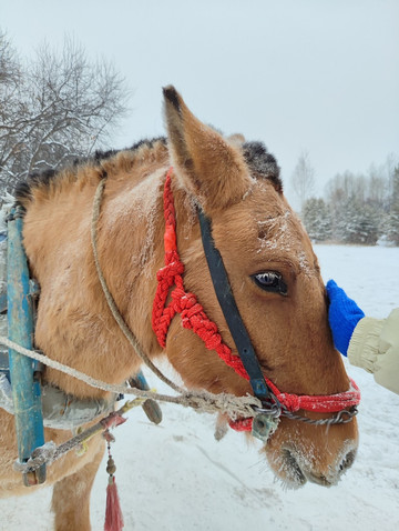 下雪天,马儿拍个特写还是非常好看的,还有就是经过雪景 林道 的时候,那种北国味道就上来了。大家都全部武装,呼吸的热气投出来,在围巾、面罩、眼睫毛上都结成了冰霜,也算是一种 极寒体验啊。