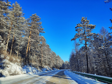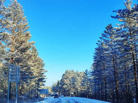 车子快到 北极 村附近时,有一段公路车子开过时居然有音乐,是《我和我的祖国》,公路两侧是盖着白雪却依旧叶子繁茂的樟子松,像守护边疆的成排战士。这种体验真的太神奇了。北国边疆,我爱我的祖国。