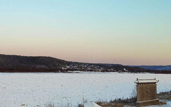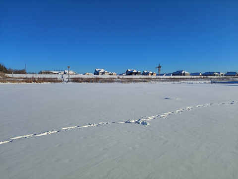 第二天上午,我到 北极 星广场,俯瞰整个县城,在这里练了一套八部金刚。瞬间不冷了。一路往东到达河岸边,终于来了一次徒步过河了,河面结冰,覆盖积雪,走过去嘎吱嘎吱响。起来玩了两小时才准备回去吃午饭,真饿了。