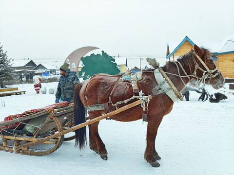 饭后办理入住, 北极 村好像家家户户都是有个小院子,冬天覆盖了厚厚的一层雪,在阳光照射下非常惹人喜爱。雪的柔软,阳光的温暖,此刻汇聚一起了。这一刻,一抹温柔的冬日暖阳,沁人心脾。