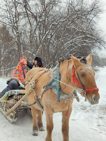 在 北极 沙洲附近,坐马拉雪橇,也是第一次体验,座位上的棉被有点冻人啊,尤其冻腰背,不得不全程拿着手垫着。