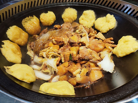 午饭一起吃铁锅炖,这顿饭真香啊,炖排骨和鸡爪,根本吃不完,土豆和玉米也好吃的,还有粉丝,都很入味,底部有放了个筛子,这样最后的汤底不会浸泡到食材,就不会那么咸,真不错。