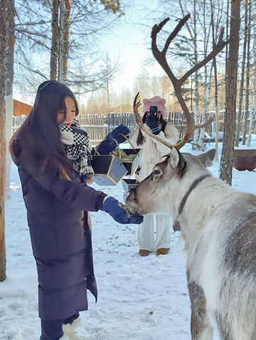 【DAY1 触摸大兴安岭精灵,逛雪夜圣诞村】漠河 拼团,第一天是逛驯鹿园,入住 北极 村,打卡最北邮局和圣诞村。