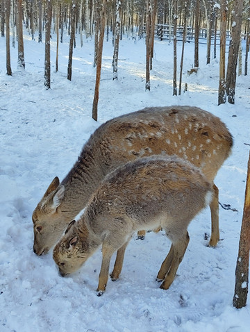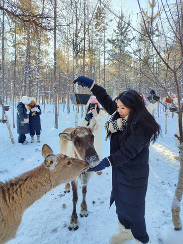 在 漠河 接齐了6个小伙伴就一路向北,很快到驯鹿苑,我轻车熟路,买苔藓,进园区喂驯鹿,还有梅花鹿。树林下人和鹿都不少,驯鹿溜达着找游客要苔藓吃。