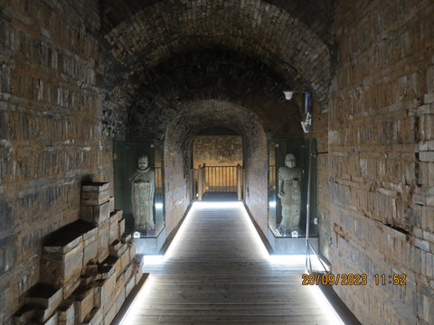 出了内部展馆,后面是北魏帝王陵墓展区,孝文帝儿子的北魏世宗宣武帝景陵可以进去,气势壮观,结构完整,墓室内风格朴实,色调雅素,可使人们系统了解北魏帝王陵墓的基本面貌,整个博物馆真的不错,大开眼界。