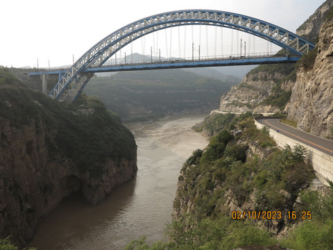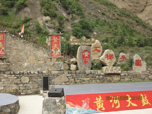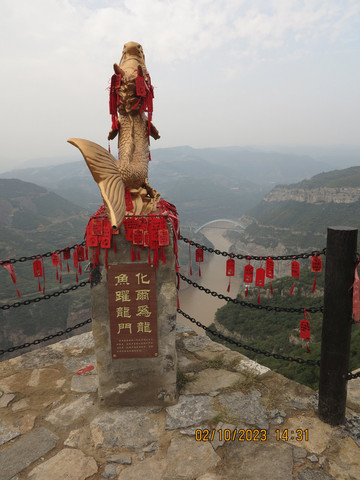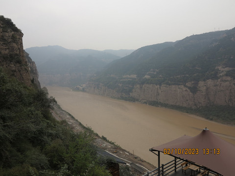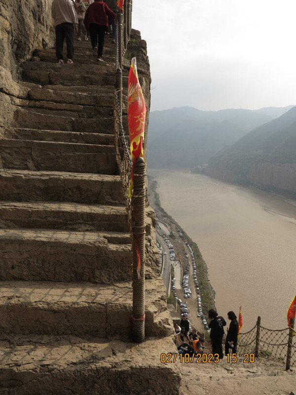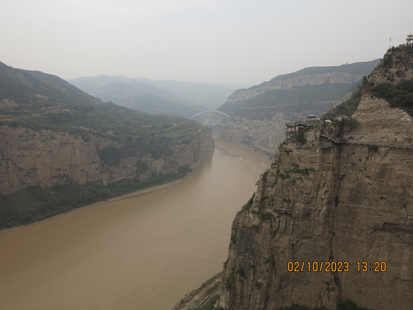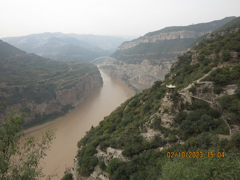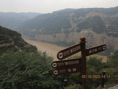 一个上午很快过去,下午直接驱车去河津黄河边的大梯子崖,这是个小众景点,之前了解不多,反正沿着黄河边走,两岸也变得陡峭,有点被惊到了,这里景色壮丽,不远处就是黄河最窄的地方—龙门,鲤鱼跃龙门的地方,这里的黄河两岸只有不到40米宽。黄河边停车进入大梯子崖景区,国庆人不少,但没有那种热门景点的拥挤。买了电梯上山步行下山的套票,先坐电梯--跃龙天梯直接到了半山腰,没敢走飞云渡,这个飞云渡完全就是悬崖上的没有保护的栈道。