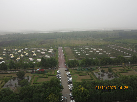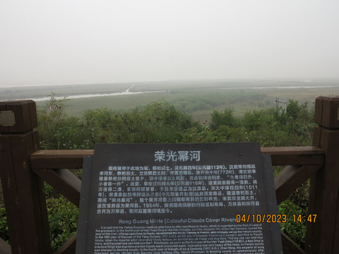 秋风楼下的张仪古道是八路军踏入山西大地的第一站,在此留下珍贵纪念。穿过张仪古道,爬上一个高地观景台,这里是汾河入黄河的景色,有着”荣光冥河”之称,说宋大中祥符四年(1011年),宋真宗带着大臣从开封来这里祭祀后土,整个黄河上闪耀着五彩祥光,有“荣光幂河”之称,皇帝开心把这里原来的宝鼎县改成了荣河县,直到1954年这里和万泉县合并成了万荣县。站在高台之上,看看“荣光幂河”的祥瑞之兆,天气不是太好,放飞个无人机感受一下。完成一天游览回运城酒店休息。