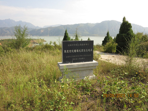 离开风陵渡,翻了一个黄土堆,不算太多的路程就可以到西侯渡遗址。这里是人类最早用火的一个遗址,门口一个展示馆很小,可以看看出土的烧骨,这里根据古地磁断代初步确定、年代为距今243万年,中国迄今发现最早的旧石器时代遗存之一。