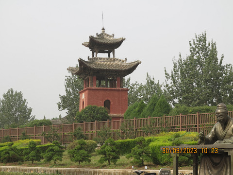 看完铁牛就去普救寺,路过蒲州古城的一些遗址,当年和老婆赶路,路过普救寺没有进去,只在门口拍照留念,今天深度游览一下。这里是元代王实甫《崔莺莺待月西厢记》中说的“红娘月下牵红线,张生巧会崔莺莺”的爱情故事就发生的地方。寺中普救寺塔又叫莺莺塔,大雄宝殿还有出土的南北朝佛像。这里主打西厢记相关,沿着古迹,走走看看。西轩、梨花深院、爬墙的地方,还是蛮不错的。莺莺塔还是古代声学建筑,和回音壁异曲同工,游人在塔侧以石扣击,塔上会发出清脆悦耳的“咯哇——”“咯哇——”的蛤蟆叫声,令游人连连称奇。据方志中称之“普救蟾声”,为古时永济八景之一。当然这里最出名的还是西厢记。