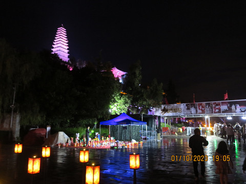 出了寺院,天气还在下雨,晚上的演出似乎要取消,不管了,对面的莺莺饭店吃个饭,好消息来了,雨停了,演出恢复。