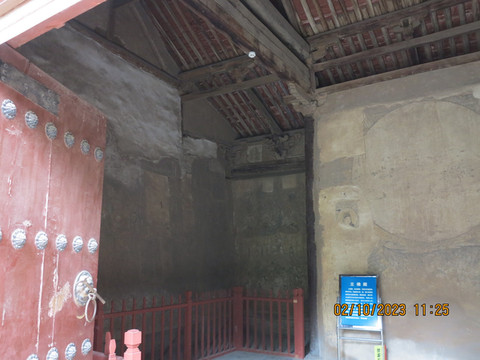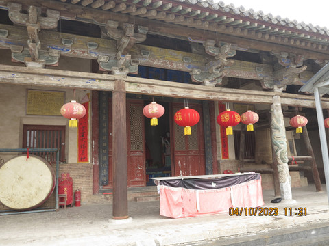 这个大殿一度推断是金代的建筑,直到2011年测绘修缮时发现一处“天圣元年”的题名,才知道这里是宋代建筑,古人审美确实好看。殿前的6根柱子,独有一根盘龙石柱,其它均为木柱,后经研究发现是明朝河津的一位寡妇捐赠,但也有说是隔壁有个庙少了一根盘龙柱,被拿了过来,反正都是传说。门口文保大爷给游客介绍,当年梁思成从父亲赠给他的《营造法式》中看到了这座稷王庙,和林徽因三次来寻,无果。只因书上写的是大赵村,古人以大通太,实为太赵村,再加上太赵村归属变化,就此错过。看来这里游客不多,民风淳朴啊!