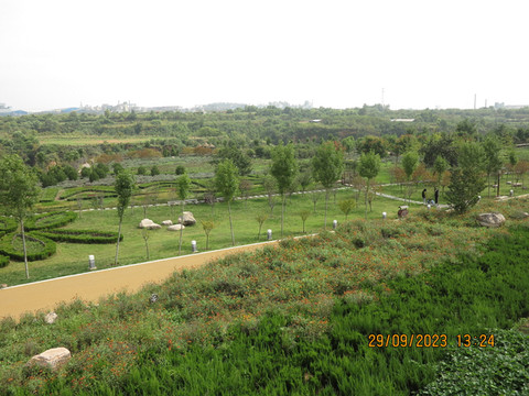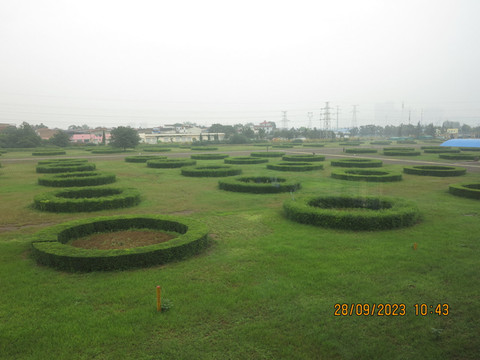 离开二里头继续赶路,去看看回洛仓遗址,这里时大运河的遗产点。始建于隋炀帝大业年间,是隋炀帝在洛阳设置的“国家粮仓”,其主要功能是为洛阳都城内的皇室和百姓供应粮食,非常巨大,区域内用植物圈出来了布局,每个圆圈就是当时的一个粮窖。考古人员共探出仓窖220座。