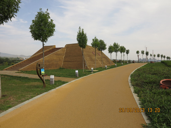 继续往东,来到渑池仰韶文化遗址,这里博物馆修缮不开门,可以去边上的遗址公园看看。修的很漂亮,看介绍说这里文化遗是仰韶早期约为7000年,仰韶晚期约为5000年前,延续时间长达2000年之久。这里在1921年,瑞典地质学家安特生在渑池县仰韶村首次发现仰韶村遗址,由安特生和中国学者袁复礼等考古人员,对仰韶村遗址进行第1次发掘,共开挖发掘点17处,获得丰富的文物资料,证实了中国在阶级社会之前存在着较为发达的新石器时代。