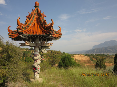 第三天:今天是小长假的第一天,中秋节。一早离开三门峡,二十分钟就跨过黄河来到山西,沿着黄河一号公路本想找一下中条山抗日战争六六战役纪念碑,遗憾没有找到,网上有说碑塌了,不知真假,只能在黄河边打个卡。继续跟着导航开到圣天湖风景区,想看看抗日英雄跳黄河殉国的纪念碑,遗憾车子开不进去只能作罢。继续前行路过永乐宫,来到一公里多点的广仁王庙,给第二天老婆宝宝他们踩踩点,毕竟国庆,希望游玩顺利。来到龙泉村,没啥人,停好车就看到一个高的土台,一眼看到了土台上的戏台,爬上台阶,进入寺院区域,里面修的非常不错,免费参观。据说这里是万科修的,很有设计感。