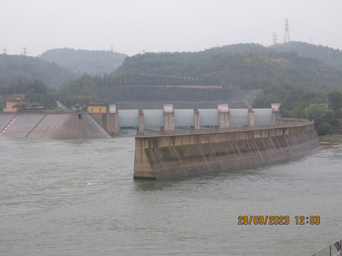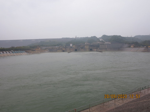 中午离开博物馆,直接去济源的小浪底,有点下雨,人也不多。从东门进入进去,有推销讲解的,没有理会,几分钟就到了黄河边,水很清,可以看到大坝,走过彩虹桥到了黄河对面,走过工程纪念广场,不远就是出水口观景台,观景台不小。