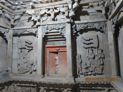 第六天:天气还行,准备北上稷山县看看青龙寺。青龙寺边上200米就是马村砖雕墓,这个很低调,进入砖雕墓,直接下到地下通道,这里共有墓葬14座,已发掘9座,开放可以参观的只有四个,虽然人不多,讲解依旧有点忙不过来,估计平时人更少。这里均为砖室墓,,有得离地表深,有得浅,听说深的都是相对后期的墓。这里的墓直接在地下盖成一个砖雕的房子,房子内由砖铺的床,不用棺材,死者直接睡在砖床上,好比地下的一个建筑,从顶部下葬然后封闭。墓壁有砖雕都是仿木构建筑装饰,极其漂亮,墓室内一圈各种民间故事雕刻,各种生活场景的砖雕,真的叹为观止。