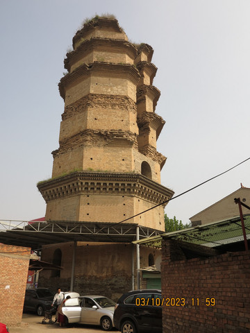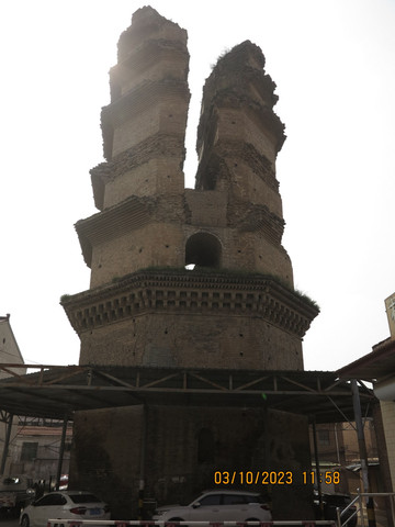离开古都博物馆,不一会就到了曲沃,顺路看看感应寺砖塔,这个又称西寺塔,这是个破损的塔,位于曲沃县城与曲沃古城之间,宋代古塔,只是个省保单位,估计也就山西可以这样。曲沃早先流传有一首童谣:“曲沃人,爱想家,一天不能离开妈,三天不见裂破塔,眼窝通红泪哗哗。”童谣中的“裂破塔”就是曲沃感应寺砖塔。